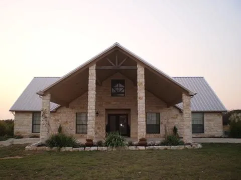 Country living at its best! Custom built ranch style home w fabulous porte-cochere situated on 10 acres. Metal roof, Austin stone, floor to ceiling rock fireplace surrounded by windows. Native landscaping, pipe fencing in front, cross fenced, barn & strg bldg. Large covered patio for all you entertainment needs. Kitchen features granite, custom cabinets, SS appl, pantry. Open concept w terrific loft which can be used as gameroom, office etc...