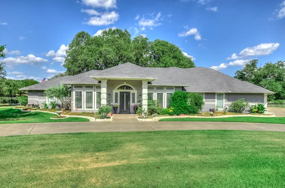 This spectacular Mediterranean construction is situated on 6 acres with vistas of a large well fed pond. The luxuriously updated home features premium equipped kitchen, wood flooring, granite countertops, and gated iron entrance. Grounds can be watered from the private water well.