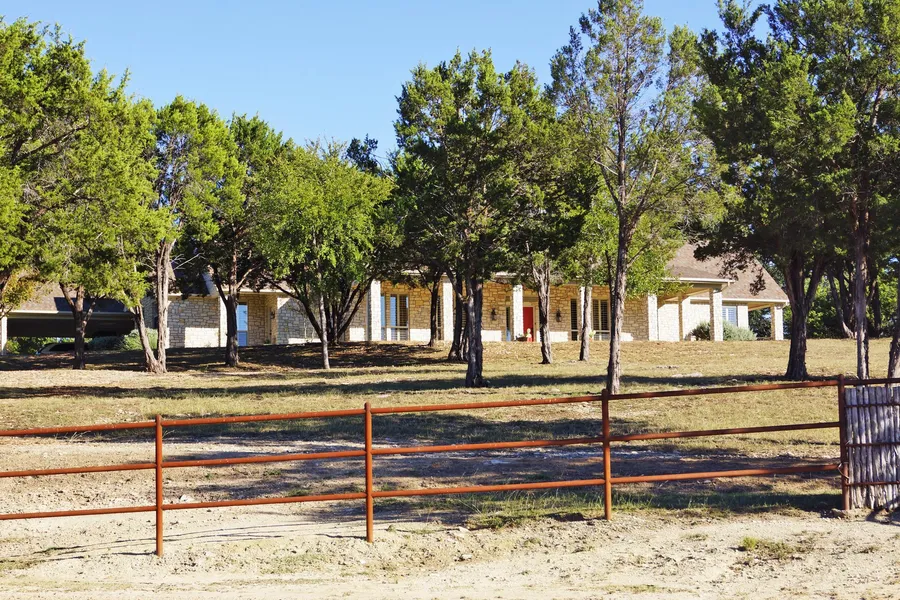Secluded hill country horse property. Remodeled 3,892 sqft. custom built stone home with a big front porch offering beautiful views of the horse facilities and coastal pastures. Horse barn, round pen, equipment storage barn. Varied terrain, plenty of wildlife, horseback riding trails run throughout the natural area.
