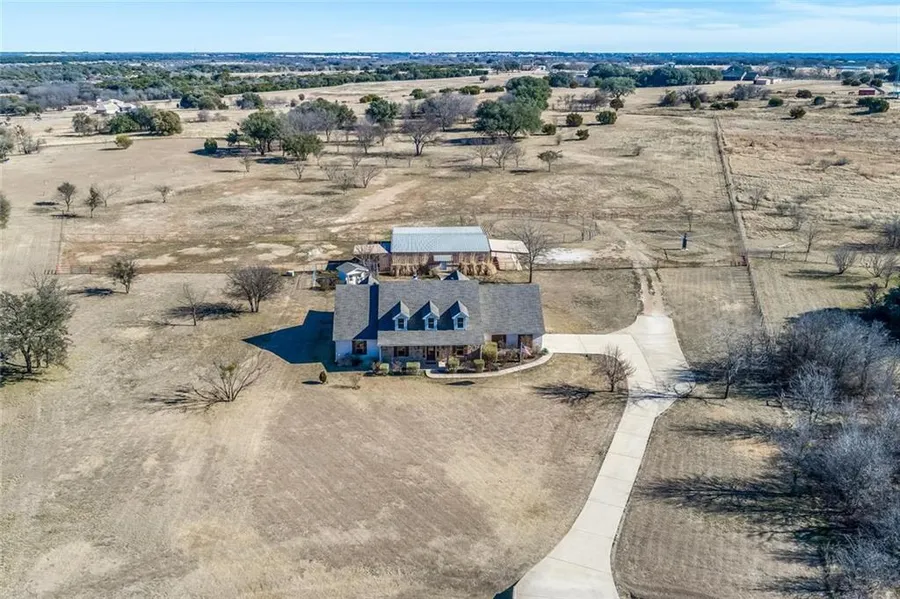 Unique Gentlemans Ranch in the upscale gated neighborhood of Lantana, with everything any avid horseman could ever want. As you walk into the front door of this custom home you will be impressed by the hand-scraped hardwood fl oors, and the impressive stone fi replace that is surrounded by picture windows. The open concept kitchen features granite countertops, double ovens, and a glass top cooktop, with a breakfast nook with more picture windows. You will also notice that the home just received a fresh coat of paint, and all new carpet in the bedrooms. Upstairs you will fi nd a huge 2nd living area with elaborate sound system, a workout room, and another bed and bath. The horse barn is conveniently located to the home and features 8 oversized stalls, tack room, wash rack, covered parking for the tractor and a Pyranha Fly system. Outside the barn you will notice a close to new Priefert walker, a Priefert stock and a nice round pen.
