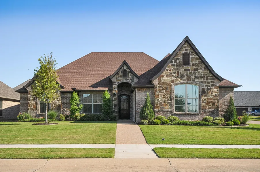 Builders personal home in Harbor Lakes features an impressive list of upgrades: coffered ceilings, custom cabinetry, crown moulding, stately entryway,solid doors, tinted windows, and a dream kitchen. Master suite is exceptional. Baths w tall toilets. Beautiful corner lot location with fenced back yard, this home is extremely energy efficient with 16 Seer Trane Heat Pump, Foam Insulation & Natural gas tank-less water heater. Zoned AC.