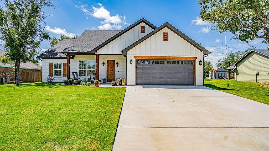 Welcome to this modern farmhouse, perfect for both entertaining and everyday living! Nestled on a spacious lot and fenced-in backyard with a flagstone fire pit area, it's an ideal retreat for your pets and outdoor gatherings. As you step inside, you'll be greeted by a gorgeous 10ft coffered ceiling and an inviting electric fireplace adorned with shiplap finishes. The wood-like tile throughout adds warmth and style to the open floor plan, along making the kitchen the true heart of the home. It seamlessly connects to the dining and family room, creating an inviting space for gatherings. Enjoy premium features like custom shutters though out the home, slow-closing cabinets, granite countertops, a farmhouse sink, and stainless steel appliances. The luxurious walk-in shower with a glass door adds a touch of elegance, while the mudroom and full-size laundry room offer practicality and convenie...