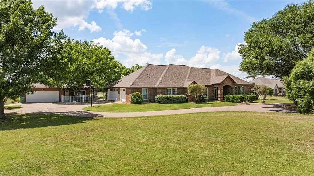 This magnificent, expansive brick home stands on 5 acres of land, offering a perfect blend of luxurious living and yet peaceful rural charm! The classic brick exterior, provides a timeless appeal and enhances curb appeal! Main house 4 bedrooms, 3.5 baths, this home is designed to accommodate a large family or entertaining comfortably. Inside, the spacious kitchen is a chef's delight, featuring granite countertops! he living area centers around a stunning stone fireplace, providing warmth and ambiance! Additionally, a separate guest house, bedroom area, huge living space, just steps away from the main house, use as an office, nice game room, studio or apartment living with a full kitchen and full bath. The guest house, has such peaceful views of the pool & rose bushes seen out the huge windows, along with a covered patio! Outdoor living is a dream, with an incredible outdoor stone kitchen perfect for entertaining, with a grill area and ample space! The property, is ideal for those who enjoy the outdoors, including pipe fenced field, animals welcome and build a barn! A nice shop provides a lot of space for hobbies, storage or projects and also has an oversized upstairs storage! The highlight of the backyard is an awesome in-ground pool, offering endless hours of recreation and relaxation. The carefully designed landscape, featuring stone pathways and large porches, creates a serene and fun environment. High Speed Fiber Internet for all your business needs! Located in a friendly community, this home provides a sense of belonging and neighborly connection!