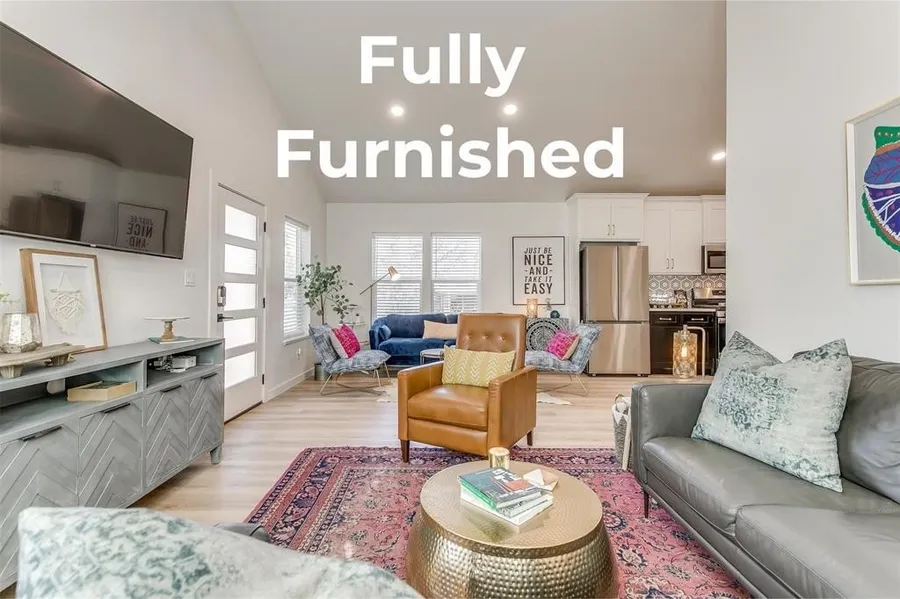 AVAILABLE NOW! The Gibson Haus is a beautifully FULLY FURNISHED ALL UTILITIES & BILLS COVERED house within walking distance to the historical Granbury Square and 5 min drive to the lake. This 3 bed+2 bath boutique home has all the modern amenities & decor while still highlighting the charm of the neighborhood. It comfortably sleeps 6 as a mid-term rental 1+ months. The Main Suite offers a King size bed w a full bathroom & double sinks. Guest Room 1 has a Queen bed & Guest Room 2 has 2 twin beds (w an additional 2 twin mattresses available upon request). The guest bedrooms share a full bath. 2 spacious living areas (with a 65in TV) give plenty of room to hang out or play games. A full washer & dryer also available on site. 3 car garage & driveway parking is available. Outdoor entertaining is easy w spacious patio, large gas fire pit w seating & gas grill.
