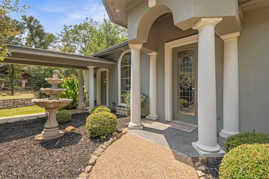 Have your cake and eat it too!!! Discover this enchanting 4-bedroom retreat on a 1.3-acre double riverfront lot along the historic Brazos River in Pecan Plantation. The great room, with six arched windows, bathes in warmth, revealing lush, heavily treed surroundings. The kitchen boasts an extra-large island, double ovens, two dishwashers, disposals, a wine cooler, and custom cabinetry. A study with a bay window and built-in bookcases, along with a master bath featuring two closets, a whirlpool tub, and a separate shower. Upstairs has three bedrooms and two full baths to provide comfort and ample storage. Outside is an elevated outdoor living area with river views. Owners have completely improved the back yard including a concrete golf cart road that leads to your private riverfront with year-round deep waters for fishing or water activities. Property is fully irrigated from the river. It is rare to find a riverfront property that is both elevated and easily accessible to the water.