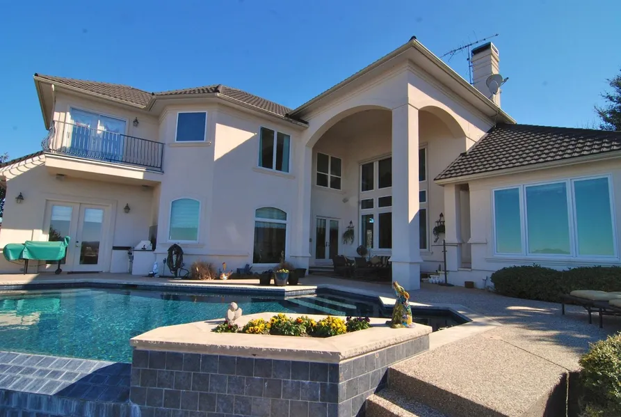 Elegant home with huge views and deep water under boat dock. This 4 bedroom 3.5 bath home has towering cathedral ceilings, huge windows, a gourmet kitchen, 2 living areas, and unfinished room above the garage ready to be anything. In the back you will find a negative edge pool, a tram to take you down to private boat dock. This is an absolutely stunning must see home.