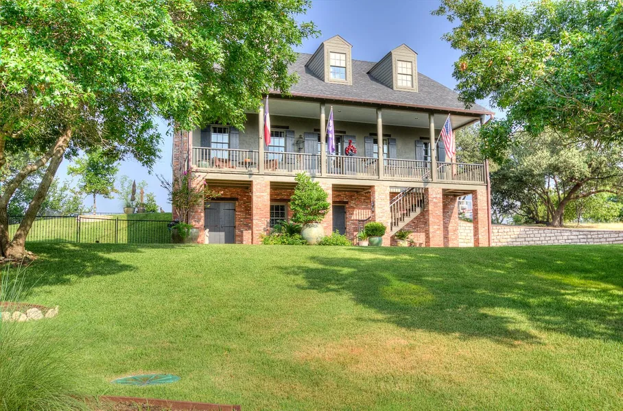 This mainbody waterfront custom Louisiana style home is an A. Hays Town Reproduction with imported antique woods, brick & wide plank Pine floors, Cypress custom cabinets, elevator shaft, basement & 2 car garage on 1+ acres, beautifully landscaped with mature trees. Enjoy the view of Lake Granbury from the infinity edge pool or the patio. The boat dock with lift & double Jet ski lifts are perfect for your outdoor activities.