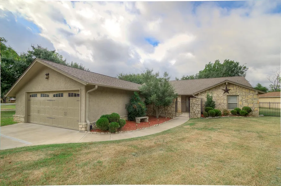 Beautiful stone home with updated windows, radiant barrier & roof. Interior has an open concept with vaulted ceilings and a study with built-in desk and bookcases. Kitchen offers breakfast bar & double ovens. Enjoy entertaining by the pool and large patio or in the 12 x 18 pool house that includes a roll up door. Whether entertaining inside or out this house offers a great design for fun times by all.
