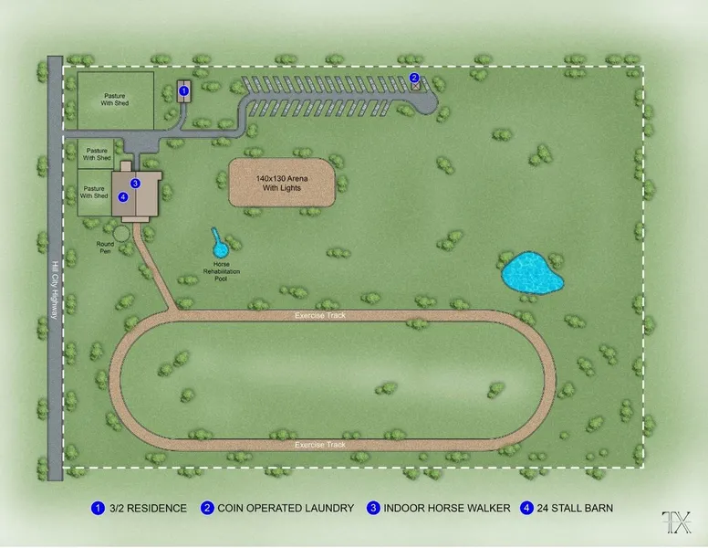 Hill City Horse Stop is a brand-new 30 space RV Park & Equestrian Facility nestled on just shy of 40 acres in Tolar, Texas. Positioned within Hood County, right at the heart of the horse capital of Texas, & just under 1 hour to Dallas-Fort Worth. The meticulously designed RV park alongside 24 individual horse stalls, a cozy 3-bed 2-bath manufactured home, & room for future expansion, the facility offers an array of opportunities. Operating on well water & septic systems, utility costs remain low, while the individually metered electrical pedestals provide transparency & convenience for tenants. To elevate the tenant experience further, convenient amenities such as coin-operated laundry facilities are also available on location. The facility is primed for immediate expansion of 10 additional parking spaces without the need for additional infrastructure development. This strategic advantage enables investors to capitalize on the property's prime location & cater to the growing demand.