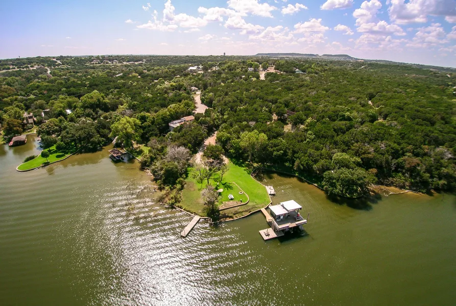 Prime lake property boasts stunning lake views! This heavily treed acreage leads to a grassy open area for picnics or recreational activities which is a perfect common area for a planned development. Featuring a boat lift and Jet Ski lift with an enclosed space upstairs with air conditioning unit. Great space for entertaining or relaxing! One of the last remaining large, waterfront tracts left!