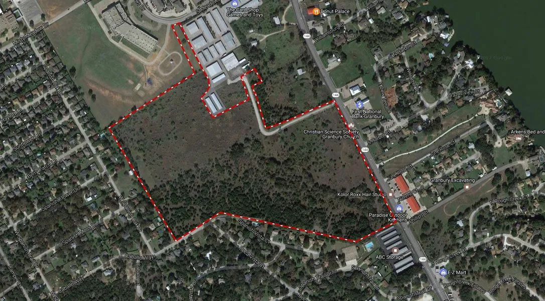 The Property has 1,200 feet road frontage on S. Morgan Street and 50 feet on S. Meadows Dr. It is not zoned but within the ETJ of the city of Granbury.