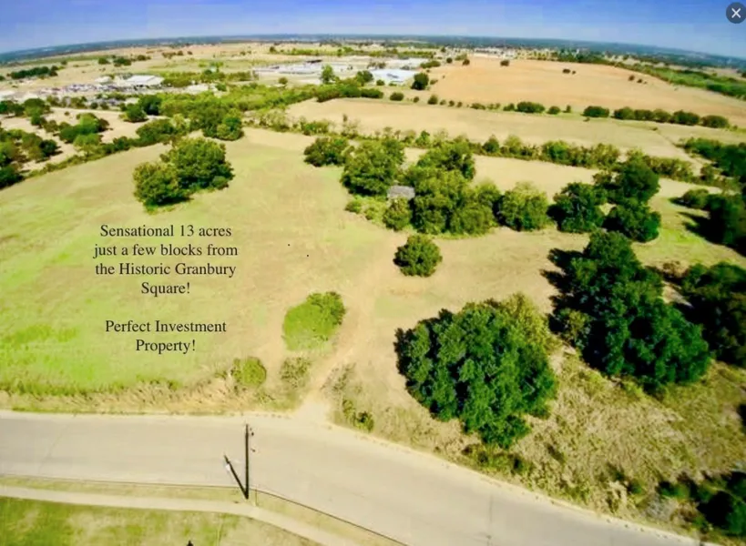RARE land tract 12.9 acres in the City just north of the historic Granbury Square. A perfect tract of land for single-family development, tiny houses or a cottage-type neighborhood. Walking distance to the Square for shopping, restaurants, and entertainment venues. Majestic, huge native Pecan trees dotted throughout property. Gently rolling property providing a unique setting for a single-family development. A new, complete survey with trees has been done. Excellent road frontage offering multiple, possible ingress-egress opportunities. In the City Limits. Finding a contiguous tract of land this close to the heart of Granbury is rare. Many opportunities for the property. City water, sewer, utilities available.