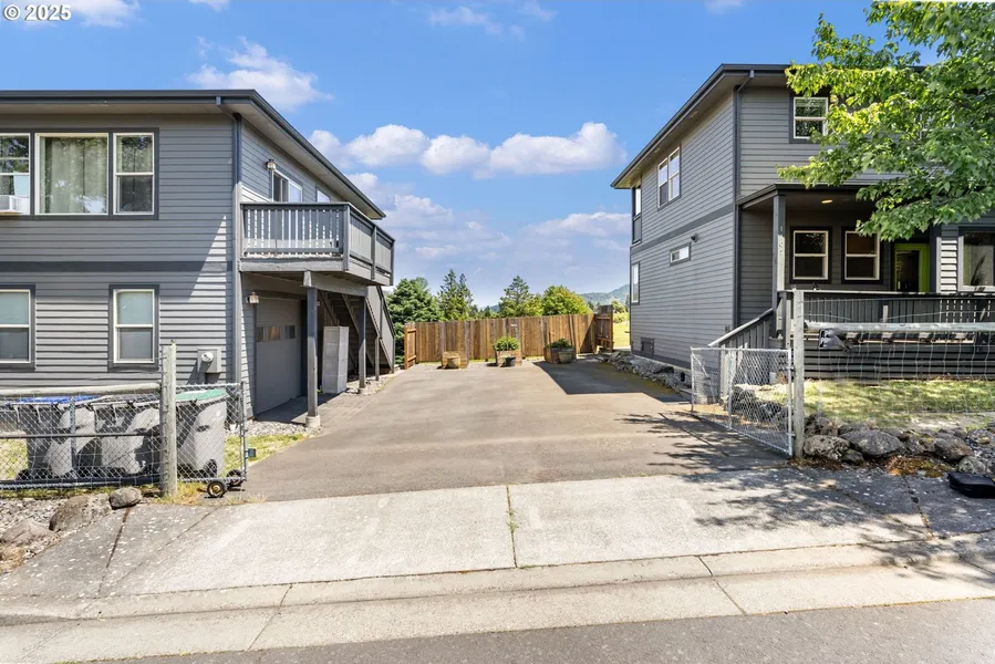 Don't miss this unique chance to own two homes on a single lot in the highly sought-after west side of Hood River. Perfectly located within walking distance to schools, this versatile property offers endless possibilities-live in one and rent the other, create a multigenerational living setup, or invest in a prime rental opportunity. Main Home:Step inside to an open-concept living and dining area with durable laminate flooring throughout the main level. The spacious kitchen features an electric stove with available gas hookups, and the living room opens onto a private patio complete with gas hookups-perfect for outdoor entertaining. A full bedroom, bathroom, and laundry room on the main floor offer convenience and flexibility. Upstairs, you'll find a generous primary suite with its own balcony and ensuite bath, along with two additional bedrooms and another full bathroom. Enjoy the efficiency of a tankless on-demand hot water heater. ADU: A private entrance welcomes you into a flexible floorplan with main-level bedroom featuring a walk-in closet and a Jack-and-Jill bathroom connected to the hallway. You'll also find laundry space and garage access on this level. Upstairs, enjoy an open-concept living and dining area with a full kitchen and laminate flooring throughout. A second bedroom and bathroom complete this level, along with great views from the upper floor windows-bringing in plenty of natural light and a sense of space. Don't miss this unique ownership opportunity-two complete homes, one lot, prime location. Schedule a private tour today and explore all the possibilities this incredible Hood River property has to offer. Don't miss the video tour of both homes!