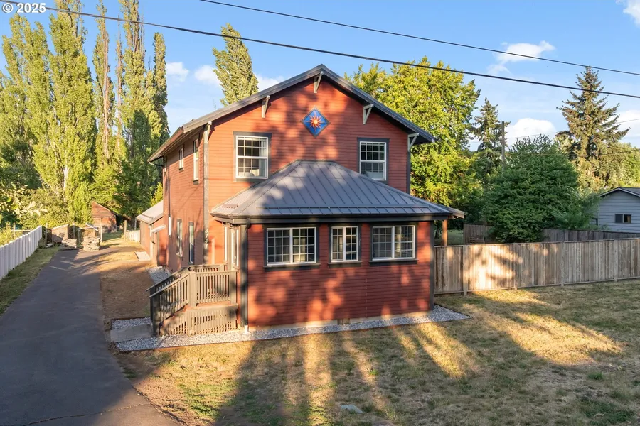Charming and spacious 1915 farmhouse on 0.64 acres in the heart of Odell. This well-maintained 4-bedroom, 3-bath home offers a perfect blend of vintage character and thoughtful modern updates across 2,295 square feet. The main level features hardwood floors, a cozy wood-burning fireplace, and a light-filled living area ideal for relaxing or entertaining. The kitchen retains its own distinct space while remaining connected to a large dining area and adjacent great room, offering flexibility for gatherings, work-from-home setups, or guest accommodations. Upstairs, you'll find comfortable bedrooms, a full bath, and access to a private side deck with peekaboo views of Mt. Hood. The home includes an updated HVAC system for year-round comfort. Outside, enjoy a fully fenced yard with a seasonal creek, mature trees, and plenty of room for gardening, play, or pets. This is the perfect blend of "c...