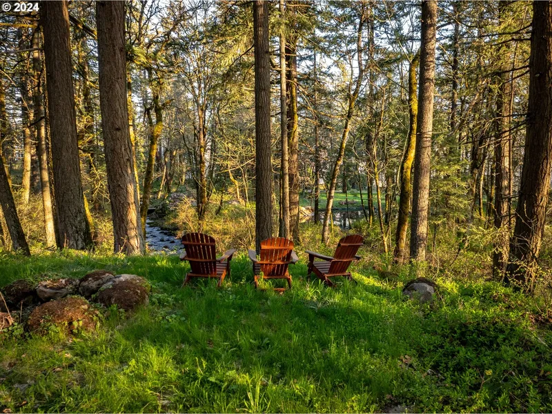 A magnificent permitted and ready-to-build 5.62 acre lot in the National Scenic Area with Phelps Creek frontage and idyllic pond. Located between downtown Hood River and all the outdoor recreation that the Westside has to offer. The building envelope for the primary residence is located towards the back of the parcel to ensure privacy. Recent work has curated the forest to just the right balance of seclusion and views, with exceptional filtered light throughout the day, and year. Dramatic views and the soft sounds of Phelps Creek abound. An additional two ~750sqft shops/garages are also approved, with utilities installed to the property line.