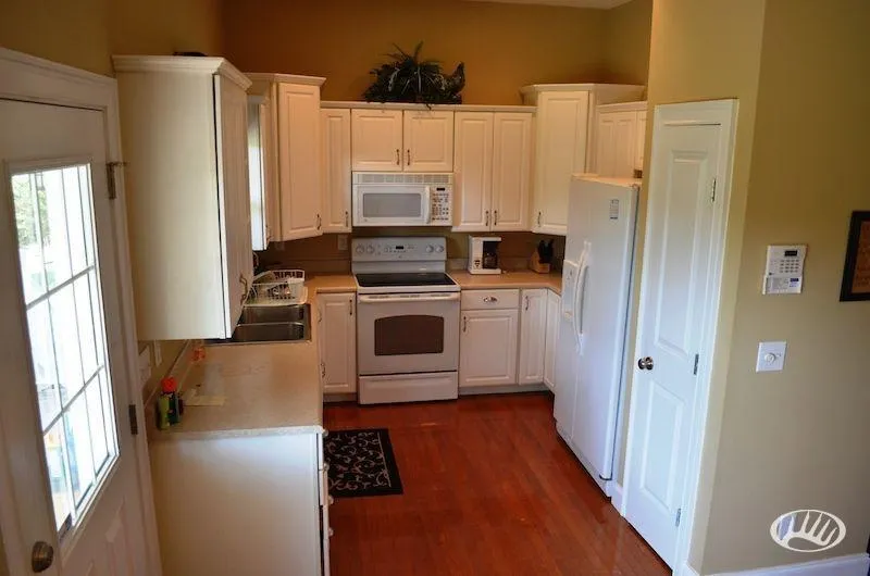 - Living room features a beautiful real wood burning, stone fireplace that is the cornerstone of the living room.