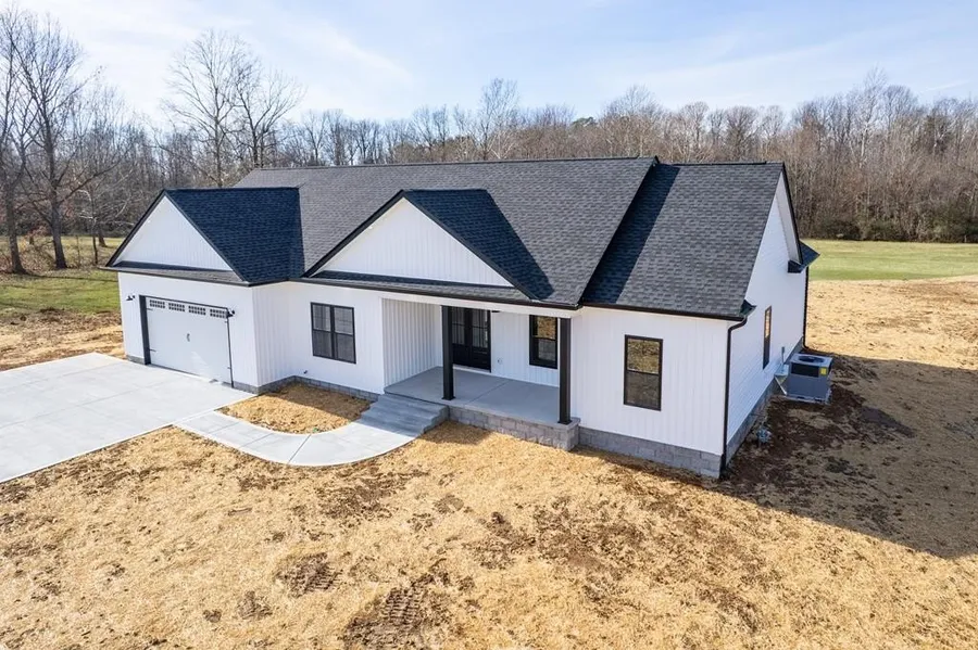 Beautifully maintained 3 bedroom, 2 bath home with office (could easily be used as a 4th bedroom w/out closet) located just outside city limits, offering the convenience of town with the freedom of county living. Situated on nearly 2 acres, this home provides privacy, space, and curb appeal in a peaceful setting. Inside you'll find an open, functional layout featuring granite countertops, quality finishes, and a striking floor-to-ceiling gas fireplace anchoring the living area. The flexible office space is ideal for a home office, guest room, or additional bedroom. The primary suite offers a tray ceiling with LED lighting, his and hers vanities, full shower, soaker tub, and a large walk-in closet with built-in cabinets. Expansive yard provide room to relax or entertain, all with easy access to city amenities. Already has exterior sub-panel (future detached garage ready). Final grading & seeing to be completed at no cost in the spring due to weather delays.