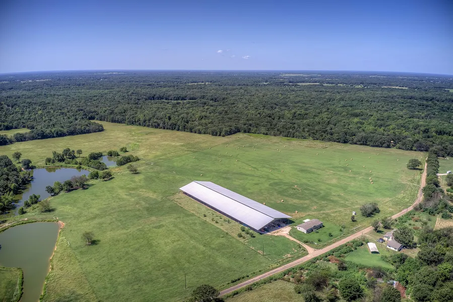 197 acres of serene and secluded rolling hills in NEast Texas has it all! Texas Tough Bermuda and fertilized each year, these 7 pastures have well water to each with concrete troughs and automatic floats. 4 stocked ponds with excellent run-off. Huge Oak trees and grove of woods for cover. 50,000 sq ft Dry stall barn with swing gate cattle pens and Priefert chute. Big bass & catfish galore! Owner has seen 12-point bucks, they rut in the valley. Red brand 5 strand barbed wire fence is 5 years old. Metal gates & entries. Peach & Plum trees, small baby Pecan grove. Corner County Road frontage. Co-op water also on site. Double wide mobile home can stay or go per Seller. This is a one-of-a-kind property. 90 mi to DFW!