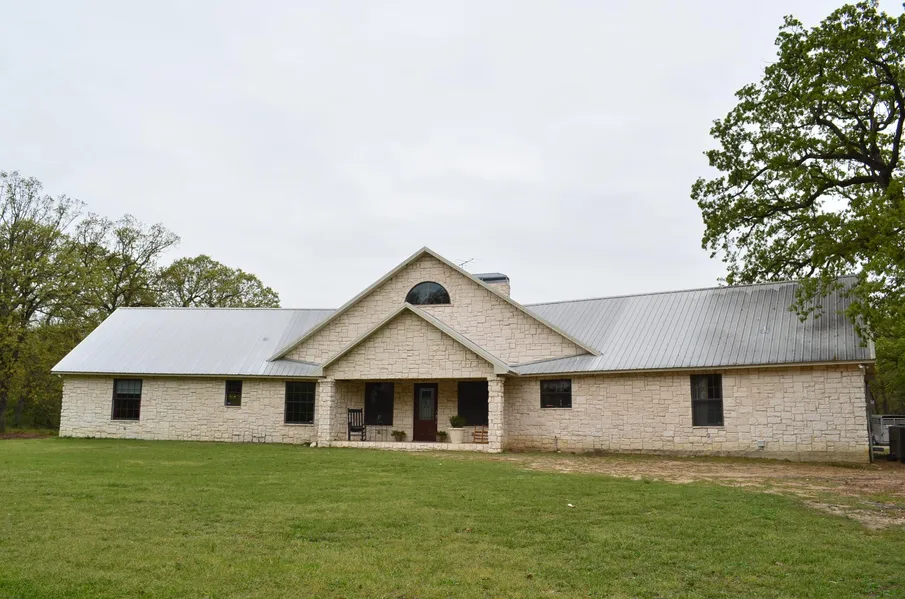 Texas Country Living at its best! Austin Stone home with metal roof, totally hidden by woods just minutes to town and I-30. Oversized pool, outdoor living space, huge screened porch, large shop with Office with bath and overhang for animals. Interior features open concept soaring ceiling wood walls with Austin Stone fireplace. Breakfast bar, walk-in pantry, spacious rooms, upstairs bonus or 4th BR, storage closets, Pella wood windows. POND!