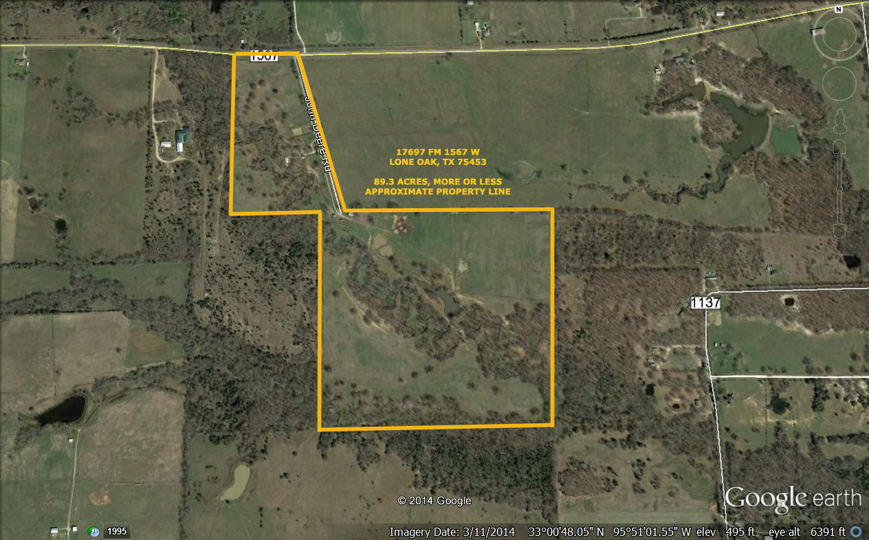 Research Parcel InformationFROM DALLAS-I-30E TO GREENVILLE. SOUTH ON HWY 69 TO LONE OAK. LEFT (EAST) ON FM 1567 ABOUT 5 MILES. PROP. ON RT (SOUTH SIDE) JUST ACROSS COUNTY LINE.
