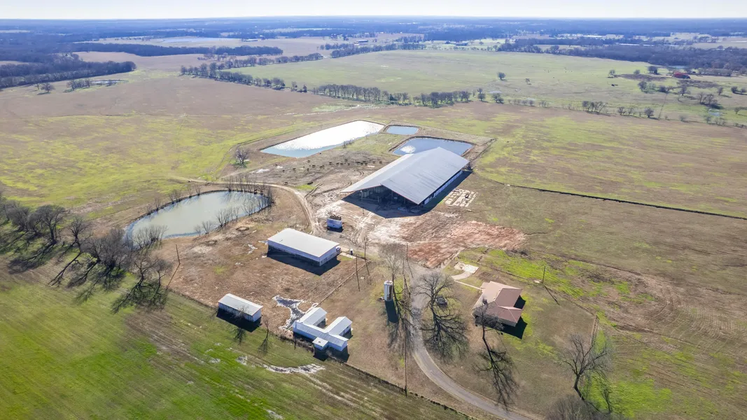 Property is fenced & cross-fenced w-lots of new fencing--ready for cattle, horses, or livestock. Comes with 6 ponds & improved grasses on desirable sandy soil. NO floodplain on tract. Both co-op & well water. Property sits at the end of private drive with room to load-unload large semi-trucks. Formerly a dairy farm & bonus of natural fertility w-organic matter already in soil. Spacious 5bed, 3ba (original 1978) open concept brick home could be main home or home for foreman, guests, or farm worker. Only 90 min east of DFW & 10 min from I-30. Great potential with versatile options for use!