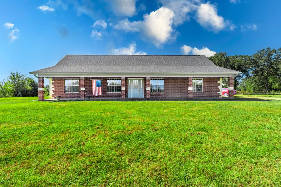 Beautiful Brick home on 1.5 acres in a quiet country setting. This home has 4 bedrooms, 2 full baths and a great floor plan. Home has a large living room with a gas fireplace. Kitchen has a breakfast bar and there is plenty of cabinets for storage. Separate dining area with french doors going to the back patio. Home has vaulted ceilings and plenty of windows throughout. Primary bath has a separate shower and jetted tub, double sinks. This home has a very nice covered front porch and back patio. Property is fenced on 3 sides. There is a 30 x 30, 2 car detached garage with covered walkway to the back door. New HVAC and gutters were installed in 2022, New Carpet in 2021, New roof in 2020.
