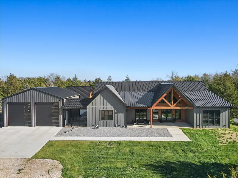 This stunning barndominium is the ultimate blend of country charm and modern luxury. Barndominium Life's most popular floor plan, this home was built and owned by the original designer. Perfectly situated just 15 minutes from the renowned Lake Fork and only an hour from Dallas, this home offers an unbeatable location for those seeking tranquility and convenience. Every detail of this home has been thoughtfully crafted, from the 15’ panoramic doors and 8’ interior doors to custom metal entry doors and quartzite countertops. The spacious layout and premium upgrades make this property truly one of a kind. Set on 4.97 acres of secluded land surrounded by cedar trees, the property also features: Main Home: A luxurious retreat with a sparkling underground pool, tanning ledge, LED lighting, and a Del Ozone system for a resort-like experience. Guest Home: A brand-new, fully equipped guest home a...