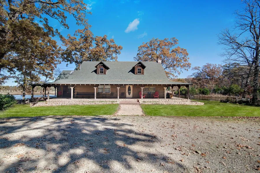 Custom Log Home on 63.88 of pasture and wooded acres. The owner of this 4 BR 3 bath home was a builder in Vail, Colorado so you can have mountain living in East Texas! Heat your home with central heat or wood burning stove for energy efficiency. Wrap around porches and stone accents are the finishing touches to this unique home. From the back porch, you have a panoramic view of the 4 acre lake. Well water and a rustic silo round out this heavenly property in SE Hopkins County.
