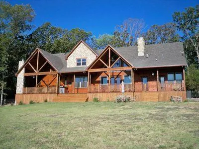 Lodge styled log home on 120 acres overlooking an 18 acre lake. This magnificent home features 3 bedrooms plus a game room, 3.5 baths, with a master suite that has a built in rock fireplace. The kitchen features rustic cherry cabinets and granite counter tops. You will love relaxing and entertaining with the outdoor kitchen that overlooks your private lake.