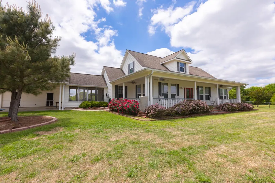 Nestled almost .25 miles off the road, this beautiful, custom home on over 43 of the quietest acres in the county features a wrap around porch, shop with electric, and a separate finished 500 sq ft office near the road with additional half-bath. Main house includes over 1200 of porches, Open to below upstairs with catwalk, game room and a walk-in attic! First floor master leads to a luxurious master bath with separate vanities and his and her closets and a garden tub. Formal dining, office, breakfast area, mud room, screened porch, and too many custom details and finishes to list! Location is only 15 minutes from town but far from any town or road noise.