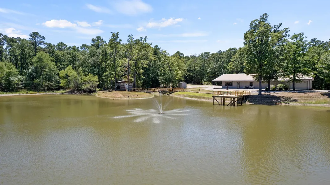 This 20+ acres, 3550 sq ft of living area with a three car garage has multi purpose opportunities. Can be a full time residence or a retreat for your company, church or club. There is a stocked lake for fishing in front with a fountain. A closed in gazebo built with teak wood for a hot tub spa. The acreage is heavily wooded and filled with deer. The large den, game room, bar, and kitchen is wide open with a 10K pool table, poker table and a shuffle board table from Las Vega. This room has a wood burning fireplace and large enough for several sectionals. There are three bedrooms with private baths for guests. This property also features a lighted putting green. This is a one of a kind property. Schedule your showing today.