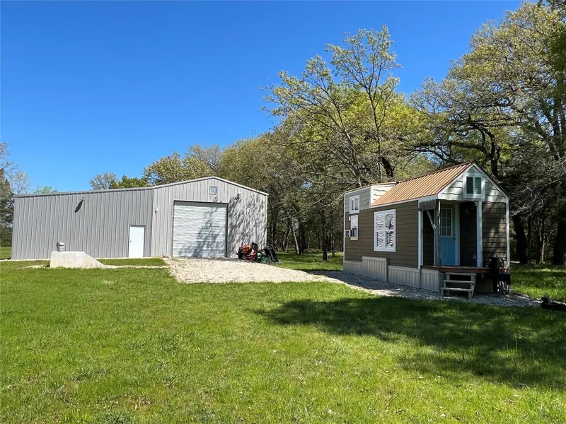 A paved road shaded by towering oaks and cedars brings you to this beautiful, quiet & secluded property ready for your dream home or weekend getaway. Newer built 1,525' dream of a shop is insulated and heated with 11' rollup doors, drive through, bathroom, and RV hookups. This property abounds with wildlife and walking trails alongside a seasonal creak and beneath the forest canopy of hundred year old oak and walnut trees. Tiny home is fully decorated, furnished, and transfers with property. New mini-split AC and heat pump, but also has a secondary propane furnace and a propane tankless water heater for off grid living. Walk right into the perfect weekend getaway conveniently located just over an hour from downtown Dallas. It is the best of country living, but with fiber optic internet available, and located in the desirable Miller Grove School District.