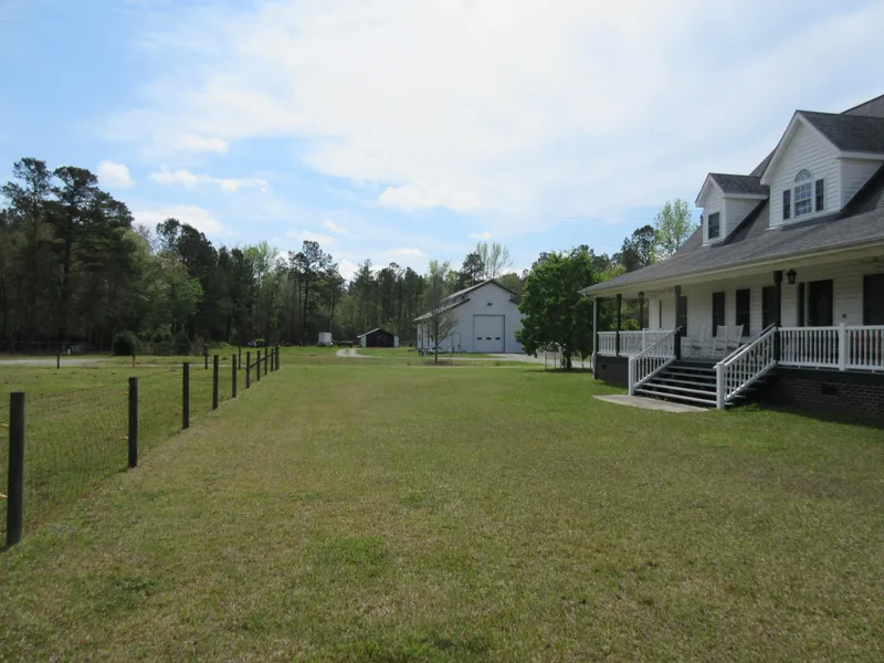 Nice horse property 25 minutes from the beach. 2,700 sq. ft. Low Country Style house set back from road on 200 yard driveway. Large 40 ft .x 60 ft. general purpose barn, tractor shed, horse run-in shed, pump house/tack room, detached studio, fenced pastures, and pond. Piped water to pasture troughs.