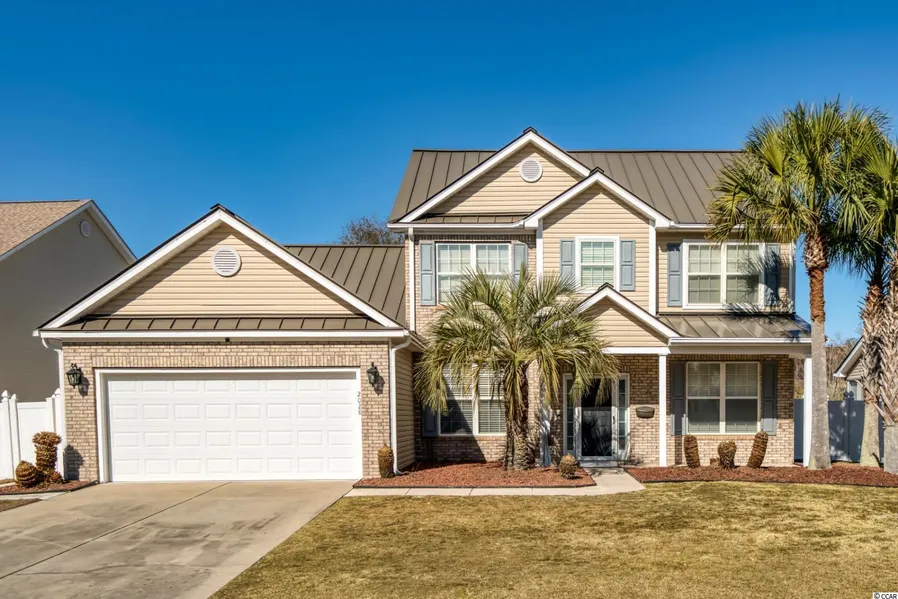 This traditional home was made for entertaining. When you enter there is a spacious formal dining room. The kitchen and den have an open concept which is perfect for causal entertaining. Your guest will enjoy the coffee/wine bar. The kitchen has beautiful white cabinets, stainless steel appliances and solid surface countertops. The master bedroom is located on the first floor. The master bathroom has double sinks, a walk-in tub with whirlpool jets, and shower. The master has french doors that lead out to the pool. There is also a half bath on the main level. Upstairs you will find three lovely bedrooms and a spacious bathroom. The home has a metal roof, which is a great choice for hurricane prone areas because they are long-lasting, durable and resist damage from high-speed winds. The home is also equipped with hurricane shutters. The outdoor patio and pool are covered by a screened enclosure. No bugs to worry about, no leaves to sweep up, just enjoy the beauty of being outside. The pool is heated by energy efficient solar panels. The patio also has an outdoor kitchen, and private bathroom complete with shower. The backyard is fenced for complete privacy. The Avalon community offers resort style amenities. There is a community swimming pool, baseball field, soccer field, basketball court, playground, and bocce ball court. All located in the award-winning Carolina Forest School district.