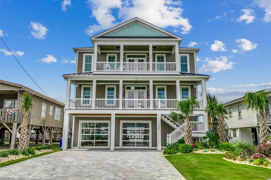 2021 Construction home with Above and Beyond Finishes inside and outside!!This sparkling, 5 bedroom, 4 and one half bath, luxury home with ocean view and on channel features elevator to all three floors. Home boasts an array of sleek finishes including, private pool with waterfall, and boat dock on channel with fiberglass bulkhead. Enjoy magnificent views of the channel and marsh from the rear decks or gaze at the ocean from the front deck. Spacious, one-of -a-kind home hosts decorator interior features including LVP and tile throughout, 9' and tray ceilings, custom board and batten wainscoting, Tibaut wallcovering, custom cabinetry with self closing drawers, quartz countertops throughout, custom gas fireplace, glass tile showers, plantation shutters, shades and remote window treatments, very upscale decorator lighting, and much much more. Kitchen featureing high end stainless steel appliances including gas range and large island .Take a look outside at the backyard oasis with awesome concrete pool. Home is on channel for all your outdoor water pleasures. Exterior porches, steps and dock has composite decking. Home features vinyl windows and Underneath home is enclosed with wind rated glass garage doors in front and rear for year round use.The luscious meticulous landscape design is well maintained with irrigation system in place. Enclosed Outdoor shower with hot and cold water is a treat after a day at the beach only a short walk away. Home has 2 tankless gas hot water heaters. Custom rugs are ordered and will convey with property. Call today to view this jewel by the beach, convenient to shopping, restaurants, and all the attractions of the Grand Strand. This is a great location for primary residence, 2nd home, or investment medallian to capitalize on income. Call today to view this upscale, custom, luxury property today. Rental projection 154,000.00-134,800.00 yearly.