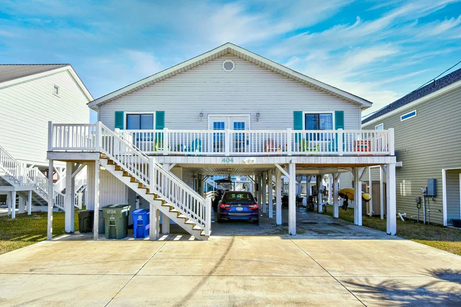 Fabulous location in Cherry Grove in weekly rental area. Light and airy, with updated kitchen, including quartz counter tops, upgraded cabinets, stainless steel appliances and LVP flooring throughout. This home has both a front and back porch, with the rear porch having a covered sun awning, and a channel view. Both bathrooms have also been updated during the current owners ownership. Home is located on small side channel, which is unnavigable for most boats, but is perfect for paddle boarding or kayaking. Home also has ample storage and parking, and also an outdoor shower. Equipped with exterior elevator as well.