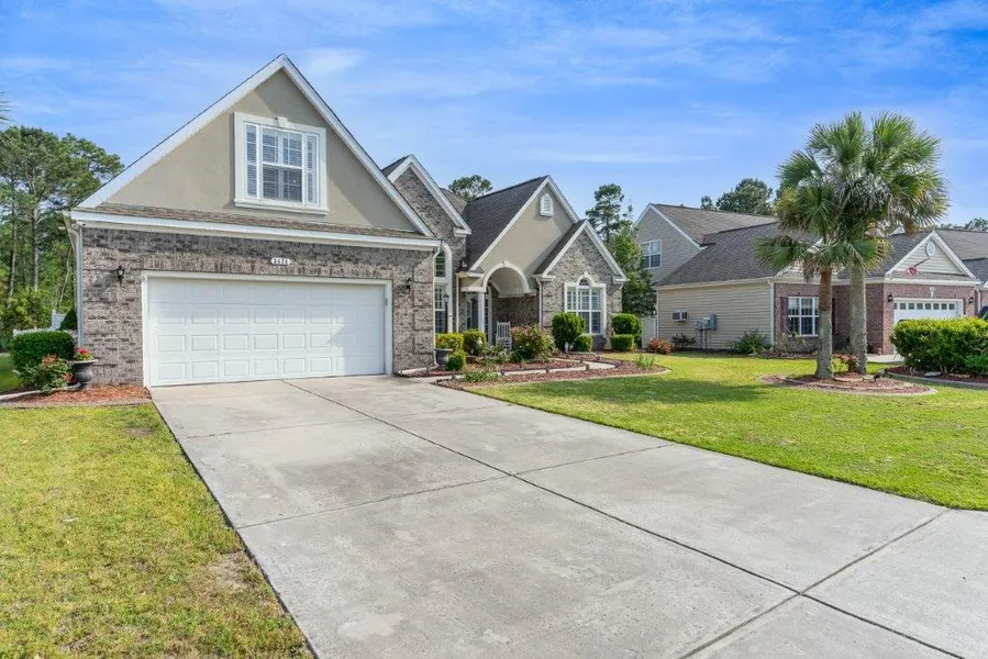 Incredible value for this beautiful Brick and Stucco front home tucked away on a quiet cul-de-sac in the sought-after Farm @ Carolina Forest Community. If you're looking for LARGE rooms with TONS of flexibility this is the. property for you. On the first-floor front of the home enjoy a large formal dining room with huge windows for tons of natural light. On the other side of the front entry, you'll enjoy an ample sized office with glass pane door and vaulted ceilings. This room could be the 5th bedroom. A full bath with tub/shower combo separates the office and bedroom #2. A very large Bedroom #3 is further down the hallway and could easily be used as a 2nd Primary Bedroom with wood floors and private full bath with stand- up shower. The great room has wood floors, beautiful fireplace and tall ceilings giving a open but comfortable feel. The kitchen has ample storage with 42" cabinets an...