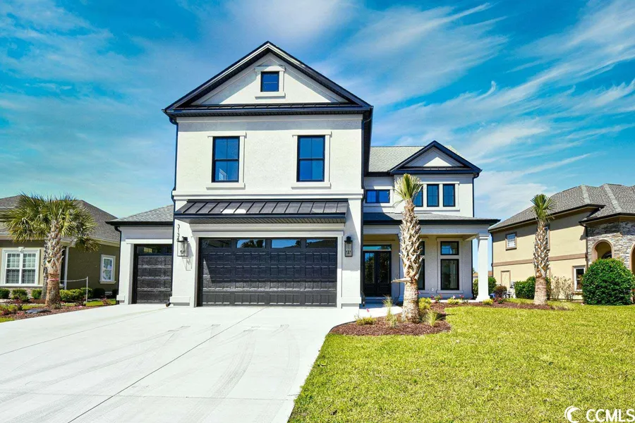 Be the first to own this brand new 6 bedroom, 5.5 bathroom home in the prestige gated community, The Bluffs on The Waterway. As you enter you will immediately notice the tall ceilings and luxury vinyl plank flooring throughout the entire main level, along with an abundance of natural light coming in from every direction. The kitchen is equipped with custom cabinetry, gold fixtures, solid surface countertops, a gas (propane) range, breakfast bar on the opposite side of the island, and a large pantry with built ins to maximize storage. The formal dining room just off the foyer is perfect for dinner with the entire family, surrounded by several windows with recessed lighting, a unique chandelier, and a tray ceiling. The master, located on the first floor, continues the beautiful tray ceilings and includes access to the back patio, private master bath with double sink vanities and a luxuriou...