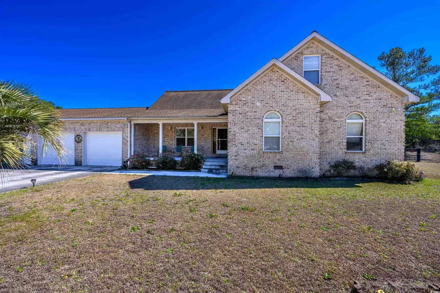 Located 2 miles from International Drive, off HWY 90. This beautiful custom all-brick home is a very special find- No HOA's and it's privacy renders a sense of absolute peace of mind that comes with easy southern living and appreciated charm. A three car garage with a workshop room this spacious piece of real estate offers so much' to be enjoyed, inside' and out'. Comprised of one and a half acre' all fenced-in and well groomed. Located within minutes to beautiful historic downtown Conway and Myrtle Beach. Boasting beautifully landscaped, lush sprawling acreage backing up to the woods. Beautiful breathtaking views of the property can be seen from both the front porch and the large screened in 15x20 inch back porch. As you enter the home through the foyer, you are welcomed into the common living spaces. Featuring 9-foot ceilings and an open concept. These areas are designed for comfort as well hoisting and entertaining family and friends. The large family style kitchen features solid surface countertops, custom cabinetry, beautiful and bright lightings, great counter space, breakfast bar, dining area, and pantry. Just off the kitchen you will find a full bath w/walk-in shower, to the right a spacious laundry area next to a large storage room that houses a "Brand New Tankless Hot Water Heater. This area also accesses the garage. Moving back through the kitchen is the dining area showcases views of the backyard and double sliding glass doors leading to a huge 15x20 screened in back porch. This home was strategically built with open space in mind as can be seen with the extra wide hallways and doorways. The large primary bedroom with ensuite bath proves to be a haven for relaxation with a Whirlpool jet-tub with recycling water heater, walk-in shower, double vanities, linen closet, large custom frosted waterfall bathroom windows, 8x10 walk-in closet with custom shelving. The other 2 bedrooms are specious 15x13 with walk-in closets and beautiful tall custom arched windows. These two share a beautiful full hallway bath. On the second floor is a true bonus" in every sense of the word measuring 900 sqft. of finished area can easily be converted into two additional bedrooms or family game room or Home office space, storage etc. This lovely home is very close to beautiful historic downtown Conway, the County Seat', which still takes on the persona of an "Old HomeTown flavor' but with a 21st century flair". The Downtown amenities and attractions are endless, antique shops, local eateries, unique one of a kind apparel shops. Beautiful River Fronts and walking trails and many other amazing sceneries and historic glem. Conway is also host to many downtown outdoor special events throughout the year and the beautuful centuries Old Oak Trees's always provide the best decor as they form canopies extending across onto the middle of its streets. However' while Conway certainly have plenty' to boast about; it doesn't stop there Conway, is just minutes away from the Bustling" World Renowned Vacation Destination "Myrtle Beach", offering Broadway at the Beach, Pelicans Ballpark, the Sky Wheel, Countless Resorts and Hotels, Ocean Blvd Boardwalk and of course the great' Beautiful Atlantic Ocean and Beaches along the Horry County Coast Line. You will certain be in Good hands with the purchase of this beautiful home, nothing but goodness all around it. Perhaps will be the best investment of a lifetime. Not all furniture will convey with purchase. Buyer responsible for verification of measurements and etc"