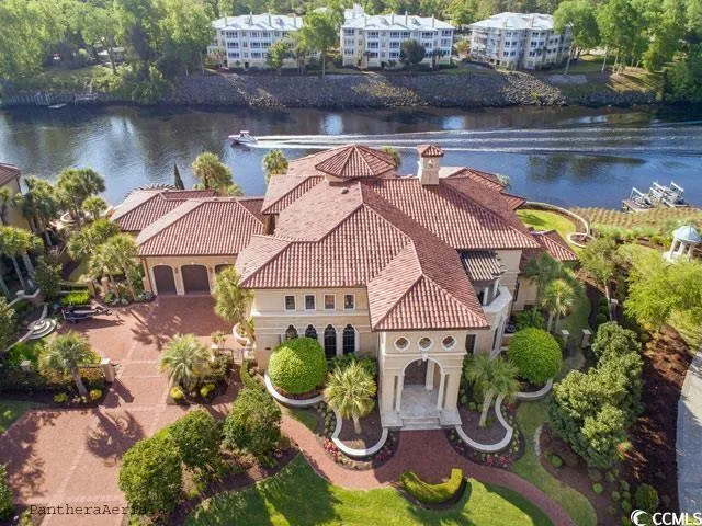 "When only the very best will do"...This is the most exquisitely best built property you will see. From entering this private community to the secured courtyard, going through the electronic gate and seeing all this property has to offer, you'll be amazed at the grandeur as you walk through this property. There is an entrance to a separate suite that could be used for quests. This home also boasts a media room, balconies and a separate escape from the Master Suite to your beautiful pool and spa area. At the front entrance you'll notice the massive double doors with custom iron work leading to dramatic 30 ft ceilings. Not included in the heated square footage is the heated room over the garage that could be used for different needs depending on what they might be. Some of the custom features are oversized Italian marble floors in the master. The kitchen boasts of wolf and subzero appliances, beautiful custom down's view cabinets, imported travertine tile flooring and granite, oversized gas range, ice maker and wine cooler. It also has an adjoining breakfast and keeping room that opens to a 4 Seasons room with glass windows and stone fireplace with beautiful views of the ICW. There is a butler's pantry with a 2nd dishwasher if needed after a huge party. The banquet sized dining room features crafted cathedral arches and spectacular chandeliers. There is also a sunken great room with a massive fireplace and a paneled study on the ground level. An elevator can take you to the 2 large bedrooms suites with private baths and a covered balcony space on the 2nd floor along with a fabulous media room that seats 9. There is a fire pit, two new Rinnai on demand hot water systems, central vac, wide plank walnut floors and the massive entrance doors already mentioned. The swimming pool and hot tub have been stripped down and resurfaced plus new tile and water heater installed. All this on almost an acre of Island Beauty. A new Waterway retaining wall has been installed. The HOA includes master association and membership to the Grande Dunes Ocean Club. "Surround yourself in elegant splendor"
