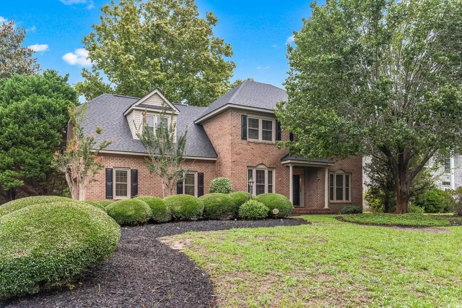 Open House Sunday Sept 8 from 2pm to 4pm! Situated in the prestigious gated golf community of Prestwick, this exceptional all brick home sits on over half an acre with a sprawling backyard that overlooks the driving range. The property features four spacious bedrooms and three and a half bathrooms. Enjoy granite countertops and stainless steel appliances. Recent updates include fresh paint, a new epoxy garage floor, and newly landscaped surroundings. The roof and windows have also been recently replaced. The oversized side-load two-car garage is conveniently located off an extended driveway. This expansive estate homesite boasts a beautiful lawn with a distinctive goldfish pond. The HOA offers full-time security, an Olympic-sized pool, tennis courts, and well-maintained streets. This beautiful community is known for its established landscaping and stunning mature trees and is conveniently located east of Hwy 17 Bypass, close to the beach.