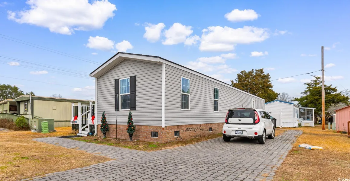Don't miss your opportunity to own this 3 bedroom, 2 bathroom manufactured home in the quiet, highly sought after area of Waterway View! This spacious home offers beautiful LVP flooring throughout, ceiling fan and beautiful natural sunlight and a brick foundation. The large kitchen offers plenty of cabinet and countertop space. The bedrooms have significant space, ceiling fans and easy access to a bathroom. There is also a detached storage unit in the back yard for extra storage room! Enjoy evenings relaxing on your enormous front porch with family and friends. Waterway View is located in a ICW community with friendly neighbors, just a short drive to the beach and all of the area's schools, grocery stores, and all of the Grand Strand's finest dining, shopping, and entertainment. You won't want to miss this! Schedule your showing today.