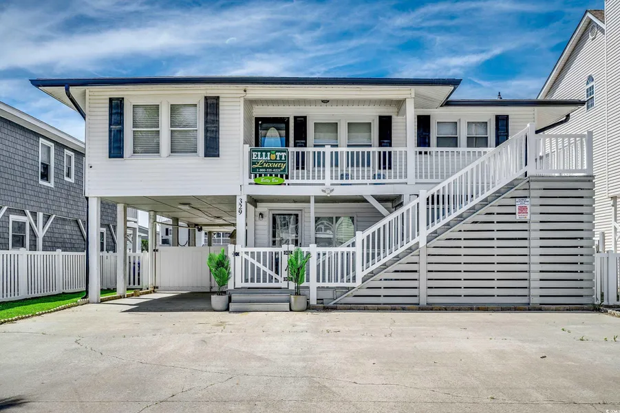 Cherry Grove channel home with EXCEPTIONAL water views! Beautifully renovated waterfront home in the Cherry Grove section of North Myrtle Beach, just over a block from the beach. Enjoy boating, kayaking, fishing from your private dock and outdoor living by the pool. This home offers a thoughtfully designed interior featuring an updated kitchen with custom soft close cabinetry, quartz countertops, a tile backsplash, stainless steel appliances, a farmhouse sink and custom built window bench with hidden storage. Refinished hardwood floors run throughout main living level, complemented by updated lighting and fans. The spacious den includes a wall of windows showcasing panoramic water and sunset views. All bathrooms have been updated in recent years. The lower level of home was renovated in 2023 into a 4th bedroom with mini split HVAC and features its own private entrance. You will love the backyard which features a new pool with tanning deck installed in 2024, concrete patio , pergola with shade sail - ideal for entertaining and relaxing. Outdoor shower for your convenience and golf cart storage. A new roof was installed in April 2022 and commercial grade 6" gutters with decorative rain barrels, upgraded underground electrical panel and fencing gates were installed in 2021, along with new vinyl railings installed on both the front and rear porches and stairwells. New upper deck installed in 2024, perfect for outdoor dining while taking in the views! This home is situated on a channel and has water views from the front and back. Hear the ocean waves crashing from your backyard, enjoy dining on deck or launch a boat, kayak or paddle board from your private dock! Don't miss out on this spectacular home. Great primary residence, vacation home or investment home, currently booked up for the summer months!