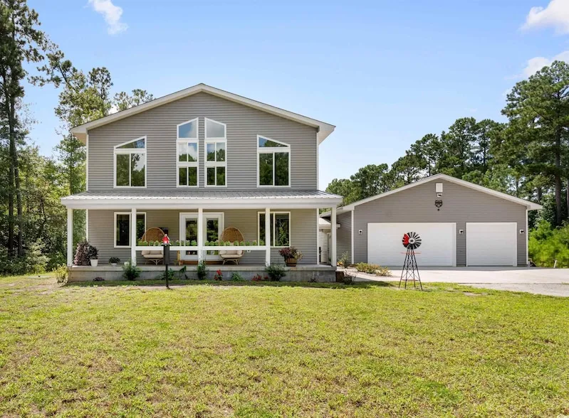 Your Perfect Country Retreat Ideal for Chickens, Horses, or Both! Nestled on 5 very private acres, this custom-built residence offers the perfect blend of serene country living with modern convenience ideal for hobby farmers, chicken enthusiasts, or those looking to bring horses onto their land. As you step inside, the home welcomes you with vaulted ceilings and expansive windows that frame the peaceful surroundings. The heart of the home is the chef s kitchen, a culinary masterpiece featuring flowing granite countertops, stainless steel appliances (including a gas stove), and elegant maple cabinetry offering abundant storage for all your kitchen essentials. The main floor also includes a luxurious primary suite with an ensuite bath, a spacious living room filled with natural light, a second full bathroom, and a convenient laundry/utility room. Upstairs, you'll find two additional bedrooms, a third full bathroom, and a versatile loft space perfect for a home office, playroom, or additional lounge area. A charming breezeway connects the main home to a spacious three-car garage, providing the perfect spot for all your tools and equipment. For those with animals, there s plenty of room to build a chicken coop, barn, or pasture for your horses. The expansive front porch is the perfect place to enjoy your morning coffee, while the back porch offers serene lake views and plenty of space to relax while enjoying the natural beauty of your property. This property truly offers the best of both worlds: a peaceful country lifestyle with the space and privacy to create your own farm while being just a short drive away from shopping, golf, and the beach. Don t miss out on this rare opportunity to own a home designed for animal lovers and those seeking the country life schedule your private tour today!