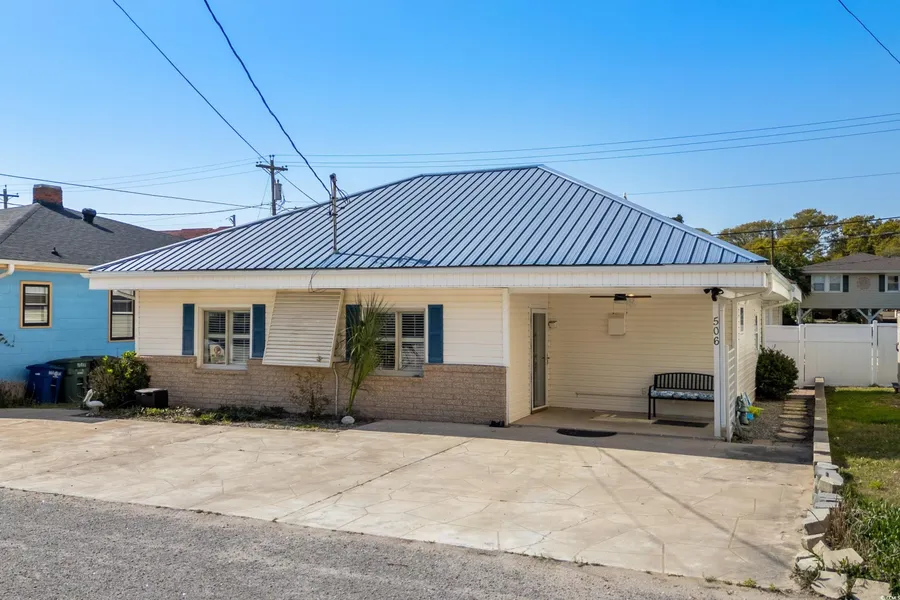 Welcome to your beachside retreat in the heart of North Myrtle Beach—just one street from Ocean Boulevard and the Beach!!! TURN KEY and ready to go for the summer season... Short Term Rentals are allowed... This charming 3 bedroom, 2 bath ranch-style home comes fully furnished and offers a bright and spacious open floor plan with beautiful porcelain wood tile floors, beamed ceilings, and plenty of natural light throughout. The updated kitchen features white cabinetry with new hardware, granite countertops, pantry cabinet, and a stylish tile backsplash, perfect for coastal living and entertaining. The primary suite includes a large walk-in closet, a private bath with walk-in shower, and a convenient laundry closet. Two additional bedrooms share a Jack and Jill bath with a large walk-in shower, ideal for guests or family. Fenced yard in back and storage shed. With no HOA, this property offers flexibility and freedom. Recent upgrades include all new electrical wiring in 2024, new AC, washer, dryer, and flooring in 2023, and new plumbing in 2022. Located just minutes from fishing piers, Barefoot Landing, top-notch restaurants, shops, and entertainment—this is your chance to live the beach lifestyle in a truly unbeatable location!