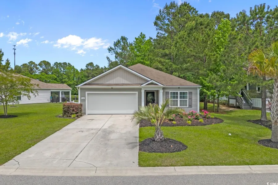 Welcome to 100 Oak Leaf Drive, nestled in the peaceful community of Anchors Bend in Longs, SC. This beautifully updated Aria model offers the perfect blend of comfort, style, and convenience, making it an ideal choice for both primary residence and vacation living. Anchors Bend is a quiet neighborhood that boasts a prime location for families and beach enthusiasts alike, with just a short drive to the Grand Strand's famous beaches and entertainment. This thoughtfully designed 3-bedroom, 2-bath ranch-style home features a spacious open floor plan with wood-look luxury plank flooring throughout the main living areas. The upgraded kitchen is a showstopper, now featuring quartz countertops, a butcher block accent, soft-close cabinetry, a newly added wine and coffee bar area with and a modern tile backsplash. Pendant lighting and a large breakfast bar make this space ideal for both cooking and gathering. Stainless steel appliances including refrigerator, microwave, range, and dishwasher are all included, along with a washer and dryer for added convenience. The freshly painted interior includes new carpet in all bedrooms, while the renovated owner's suite offers a serene retreat with a spacious walk-in closet, new tiled floors in master bath, beautifully updated double vanity, new lighting, custom wainscoting-style accent wall and a 5-foot walk-in shower. Step outside through sliding glass doors onto the 12x8 covered and screened rear porch, which overlooks a partially wooded and water-view backyard, perfect for relaxing year-round. Additional features include a beautifully landscaped yard with a sprinkler system, ensuring your outdoor space stays lush with minimal upkeep. Residents of Anchors Bend enjoy access to a community pool, an amenity center with a fitness room, and low monthly HOA fees that cover these perks. This home is more than just a getaway--it's a lifestyle! Schedule your showing today to see everything this beautiful home and community have to offer.