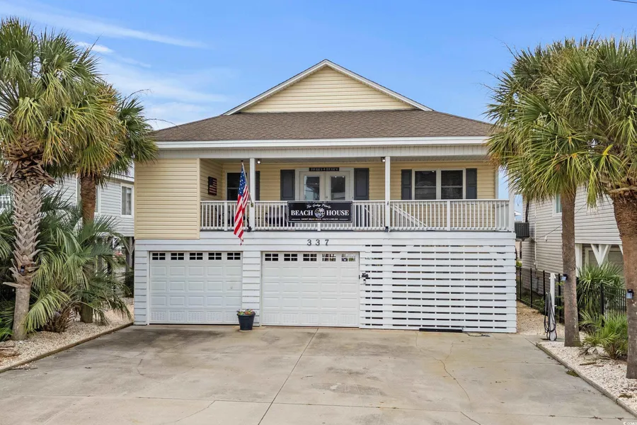 Experience the best of coastal living in this beautifully updated raised beach home, perfectly situated directly on a deepwater channel in the heart of Cherry Grove, just two blocks from the ocean. Offering 5 bedrooms and 4 baths across two levels, there’s plenty of space for family and guests. The interior features luxury vinyl plank flooring, fresh paint, modern fixtures, and stylish furnishings throughout. Enjoy a bright, open-concept kitchen with an island and dining area, a spacious living room with water views, and multiple outdoor spaces designed for relaxation—including a covered porch, sun deck, and private boat dock. The ground level includes an additional bedroom, bath, and covered outdoor living area, plus a 2-car garage and workshop/storage space. Whether you're looking for a primary residence, vacation getaway, or income-producing rental, this waterfront gem checks all the boxes.