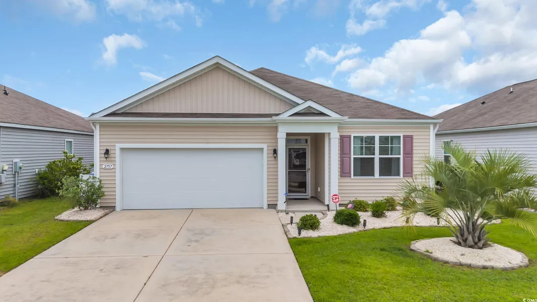This well-maintained 3-bedroom, 2-bath home offers comfortable living in a prime location. The open-concept kitchen and living area provide a functional layout with great natural light and a view of the community pond. The screened-in rear patio extends your living space and is perfect for enjoying the outdoors. Most closets have been professionally customized to maximize storage, making the most of every inch of space. The bedrooms are spacious, and both full bathrooms are clean and modern. Located just a golf cart ride from the beach and the shops and restaurants at Market Common, this home also offers access to great community amenities including an indoor air-conditioned pickleball court, pool, and hot tub. Golf courses and the airport are just minutes away. This is a practical and well-located home with thoughtful features throughout.