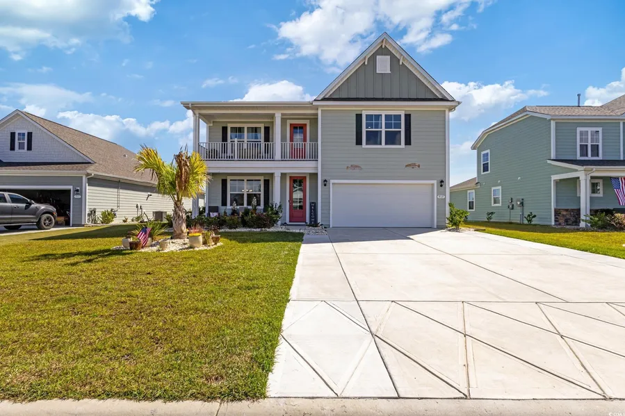 Looking for a home with lots of space and two living areas? Check out this 2 year new move-in ready home. This popular Tillman plan gives you the perfect mix of indoor and outdoor living. Backyard has a pond view. A large front porch with a second-floor balcony with a spacious rear screen porch! The kitchen showcases sleek quartz countertops, 36" cabinetry, huge eatin island with stainless appliances, including a gas range. Beautiful wide plank laminate flooring flows throughout the dining room, kitchen, and living room. The first-floor owner's suite boasts a huge walk-in closet and ensuite bath with a double vanity, 5' tiled shower, and linen closet. Upstairs you'll find a generous loft area, four additional bedrooms, and two full bathrooms—one of the bedrooms even has direct access to the balcony! This is America's Smart Home—equipped with industry-leading smart home technology that allows you to control the thermostat, front door light and lock, and video doorbell from your smartphone or with voice commands to Alexa. Best of all, the HOA fee includes access to the community pool, giving you even more value and relaxation without leaving the neighborhood. Approximately 3 miles to the beach. Conveniently located to groceries, retail shopping, restaurants, doctors offices and hospitals. Current owners are downsizing. Perfect for growing families or generational living. Make your appointment for a private showing!