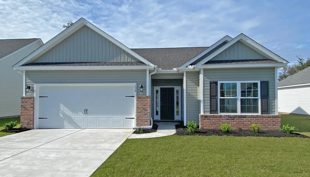 Under construction the popular floor plan the Hatteras. The home comes ready with an open floor plan with Vaulted ceiling in the living room , tray ceiling in the master , stainless steel appliances including the Range,Microwave and Dishwasher As well as many other standard features other builders do not offer. You can Take comfort in one of our newly constructed homes in one of our newest communities The Tides at Little Creek . For 2021,2022,2023 we have received the WMBF News and Sun News Awards for the Best New Home Builder in the Grand Strand . We have a reputation for quality and value, whether you are a first time home buyer or looking for your next new home. We are sure to have a home that suits your needs and lifestyle. In the Villages at Longs all of the homes will come standard but not limited to Central Air Conditioning, Low "E" Energy Efficient Windows with Screens,Profiled Kitchen Cabinets with Crown Molding, Stainless Steel Appliances,Trimmed and Painted Garages with Drop Down Stairs fo Attic Storage, Garage Door Openers, Maintenance Free Exteriors with Vinyl Siding, Brick Accents per plan. Covered Porches per floor plan,Separate rear Patios for Seating and Grilling , Landscaped and Sodded yards . Customization may be possible , Square footages are approximate. Pictures Photos , Colors anf Layouts are for illustration purposes only and can vary from home to home. CALL OR VISIT TODAY FOR UPDATED INFORMATION AND INFORMATION ON ALL AVAILABLE HOMES.